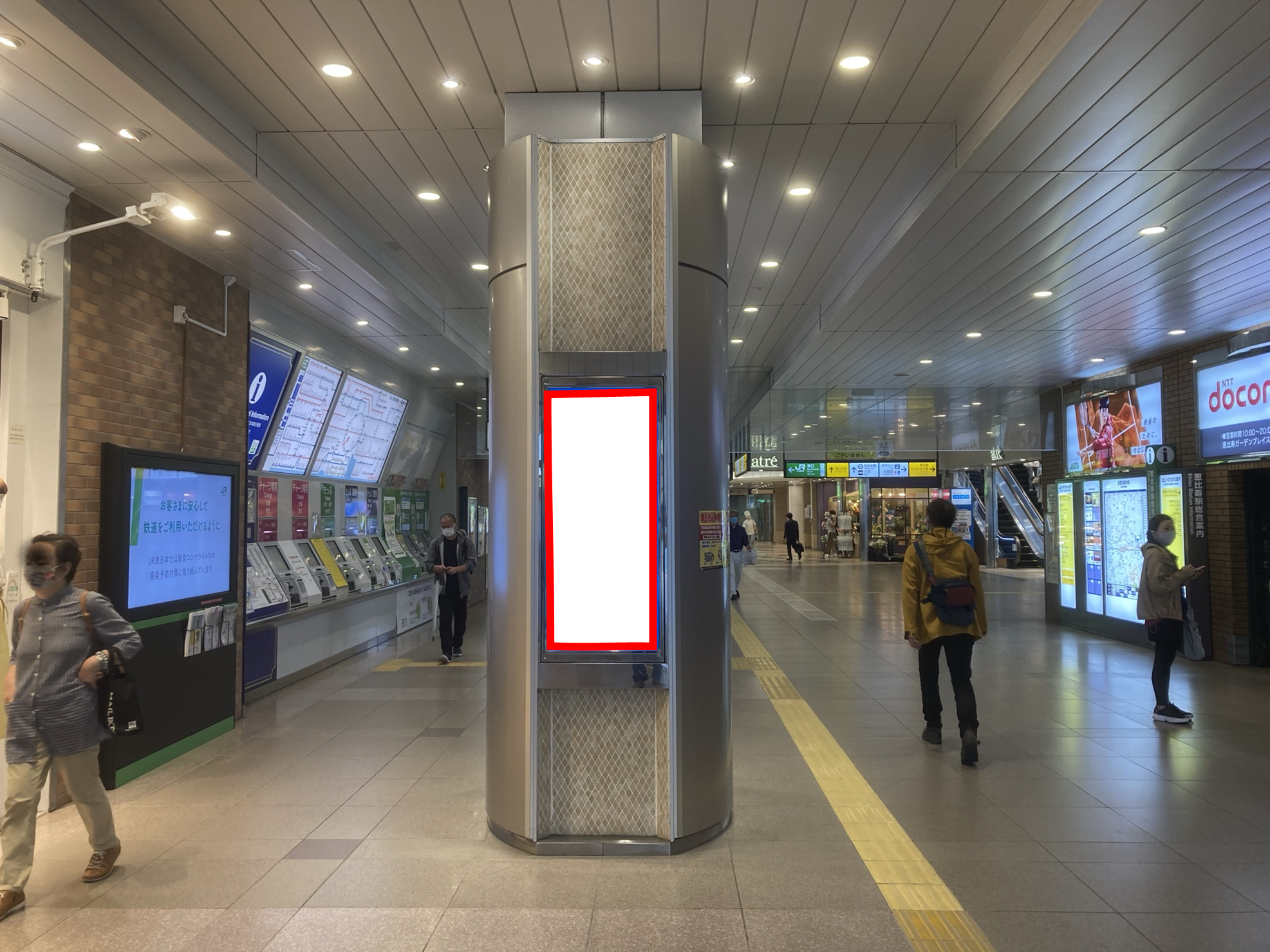 ■改札前通路の大変目立つ場所のため、企業広告・商品PRのほか、東口の誘導案内看板としてもお使いいただけます。
