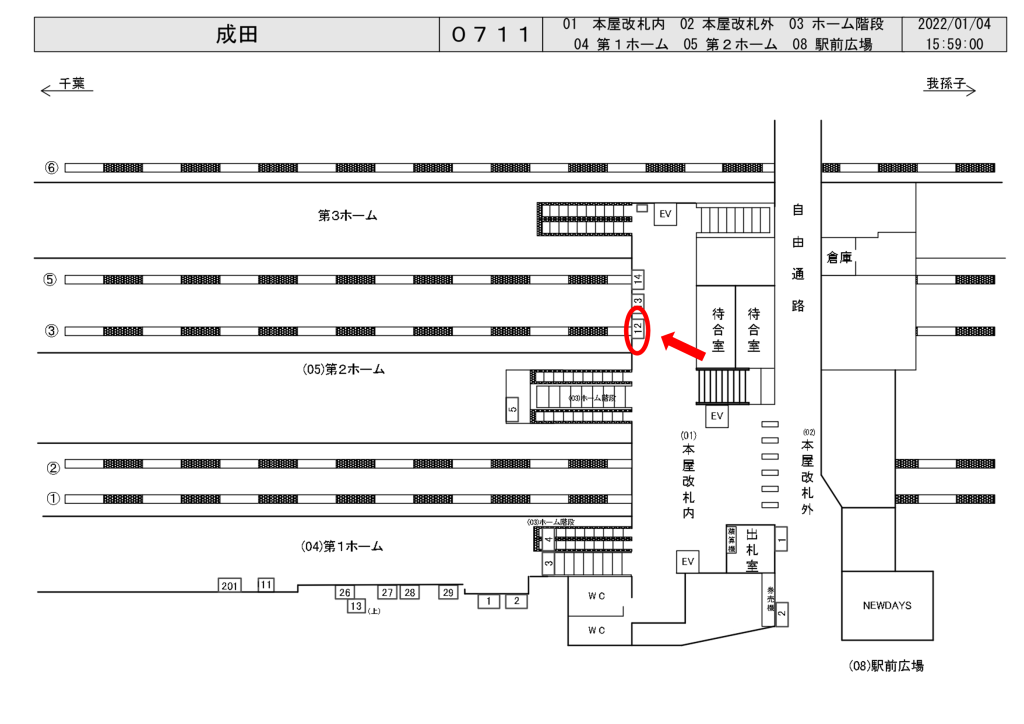 JR成田駅、第1ホームと第2ホームの中間通路に設置されている看板です。