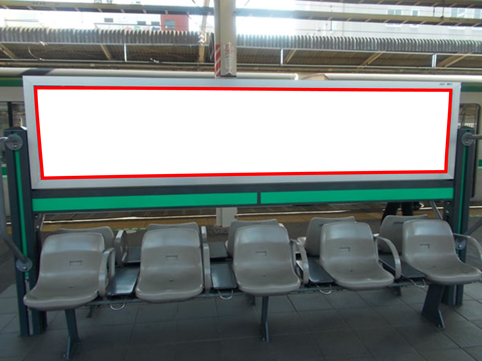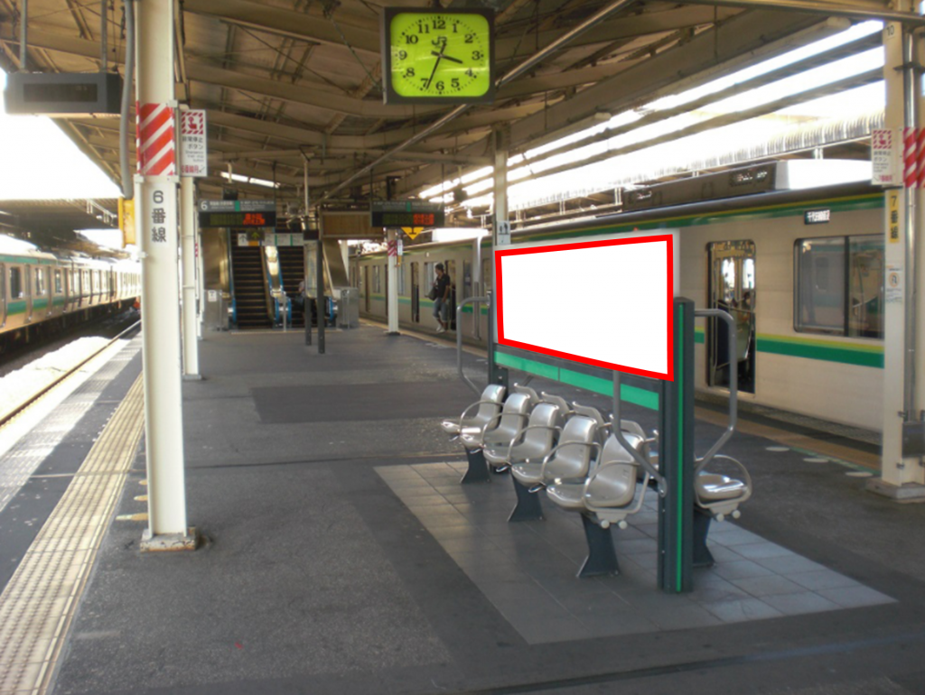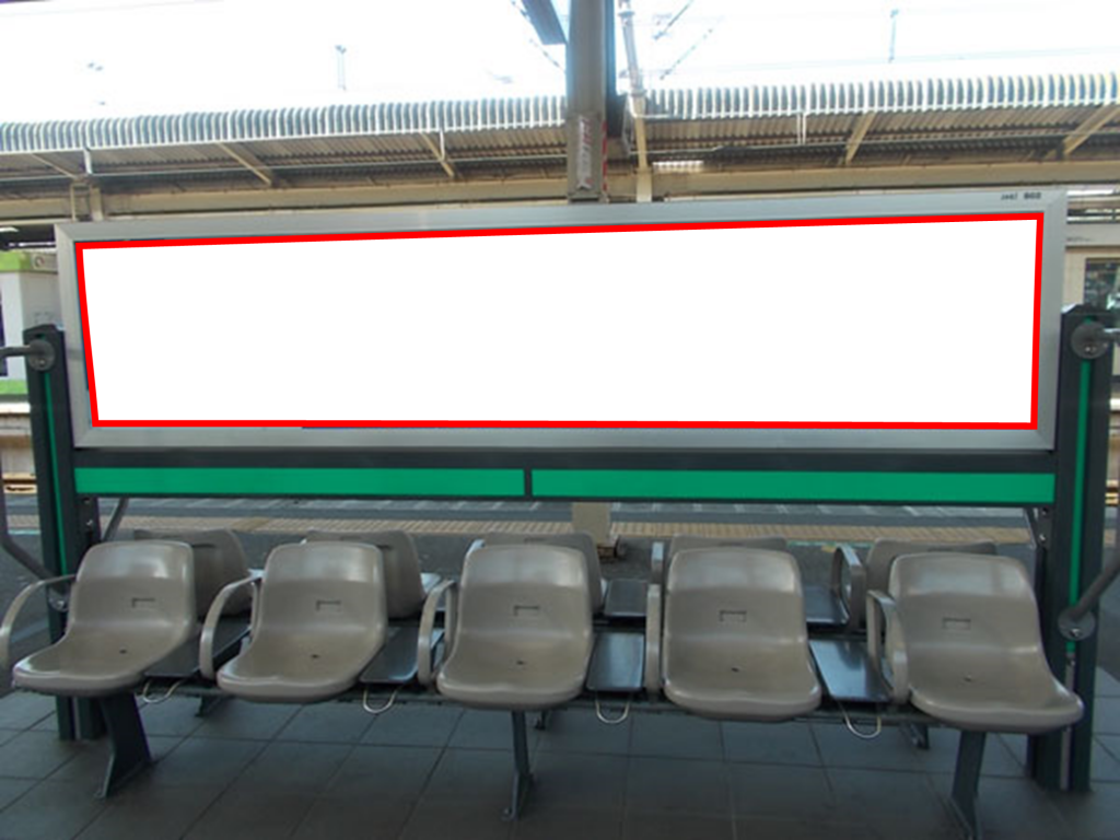 JR我孫子駅の第3ホーム(常磐線、各駅停車)に設置されているベンチ両面看板です。