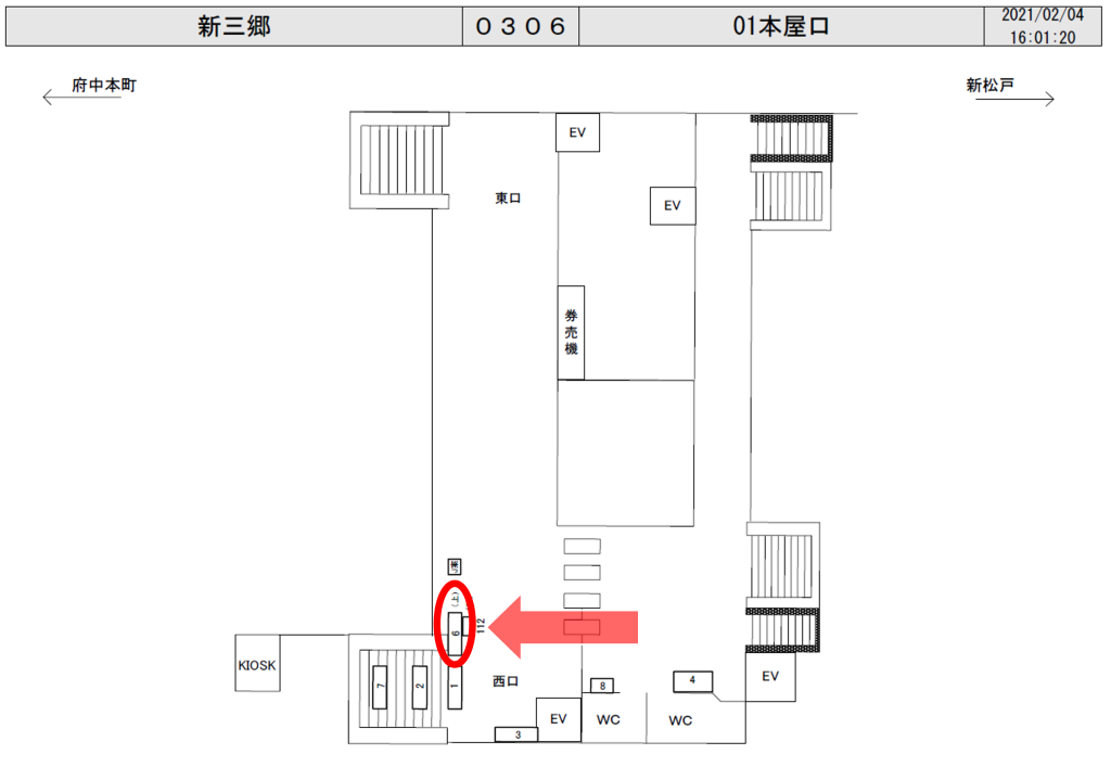 JR新三郷駅改札外、西口階段への通路上部に設置された看板です。
