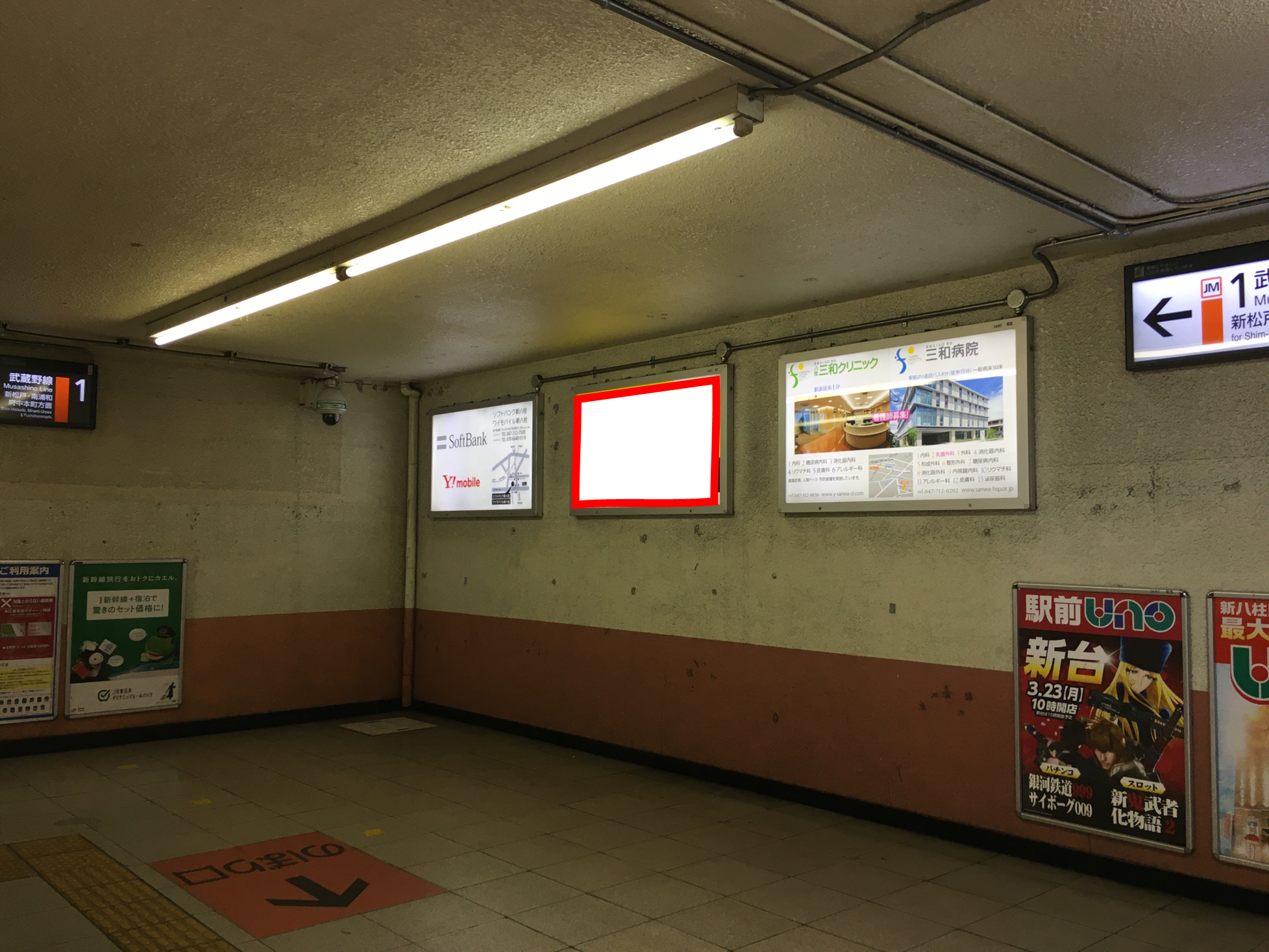 JR新八柱駅改札内、武蔵野線ホーム階段踊り場に設置されている看板です。
