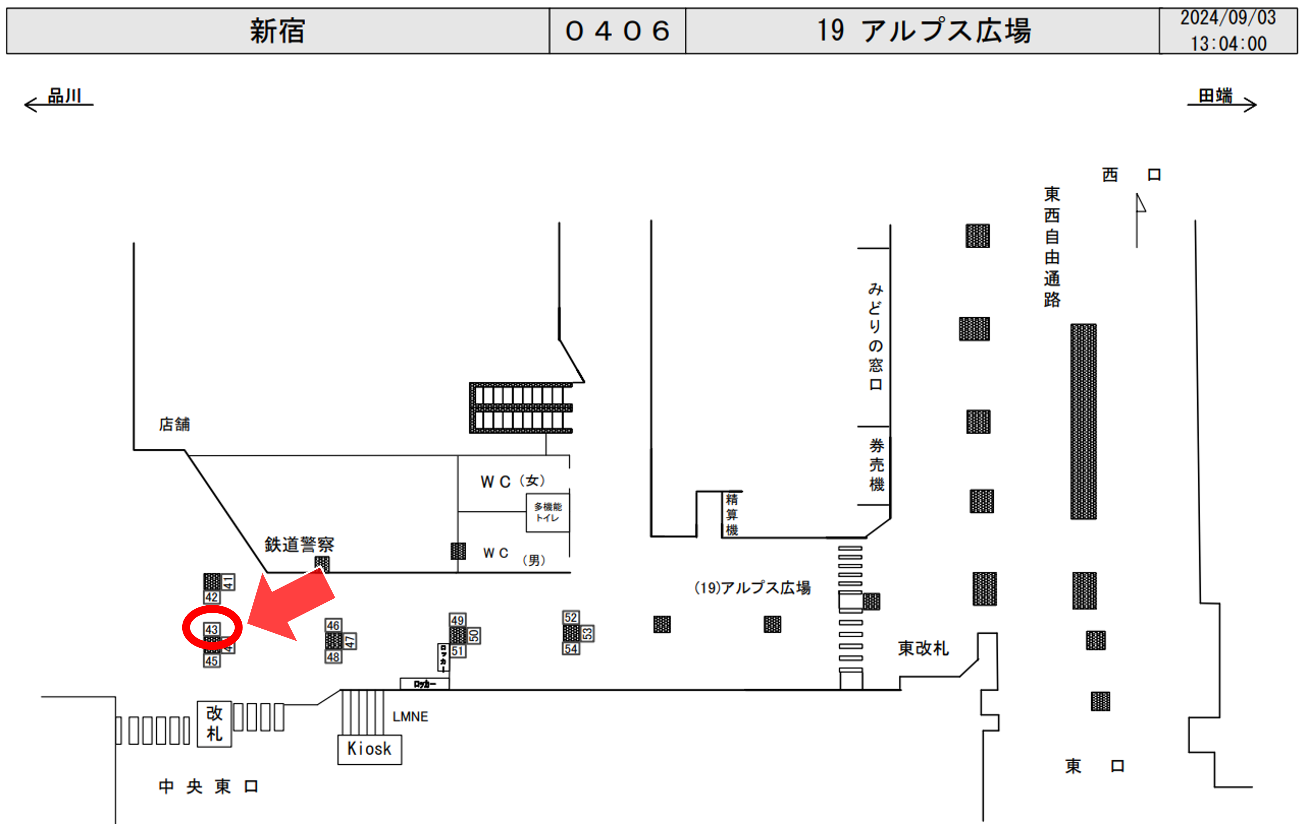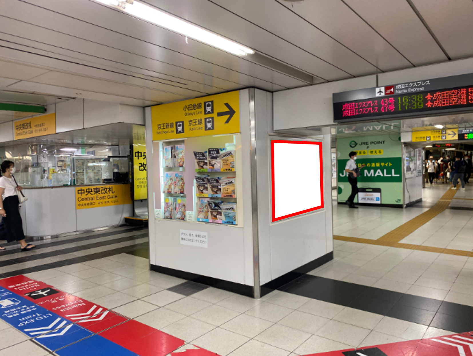 JR新宿駅の中央東口・東口間にあるアルプス広場の中央東口改札付近に設置された看板です。