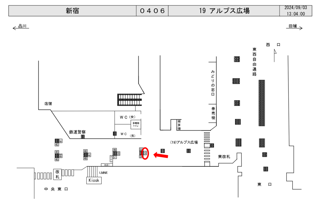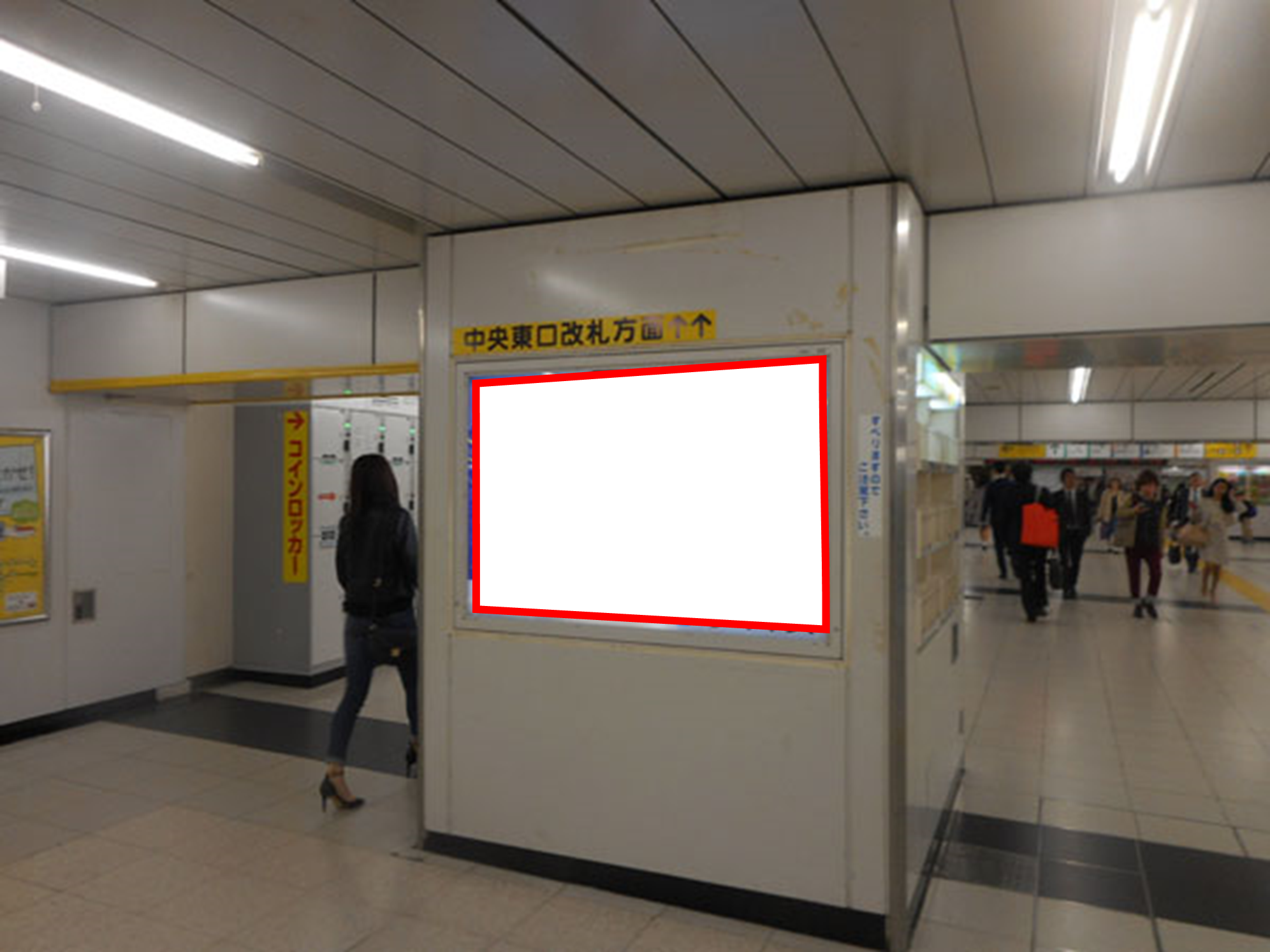 JR新宿駅の中央東口と東口の間にあるアルプス広場の東口改札寄りの柱面に設置された看板です。
