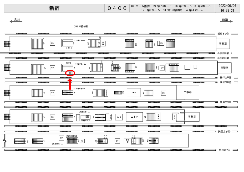 JR新宿駅の第7ホーム、ホーム階段壁面に設置されている看板です。