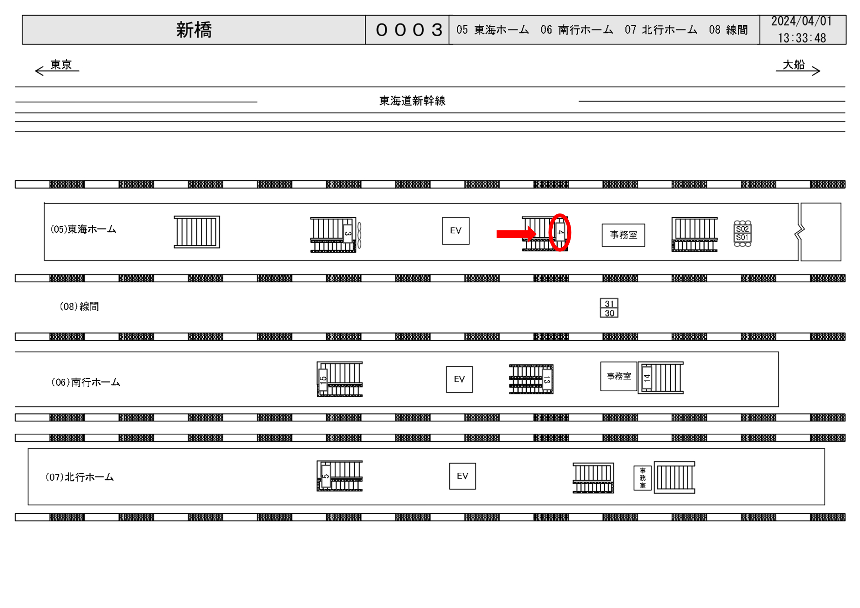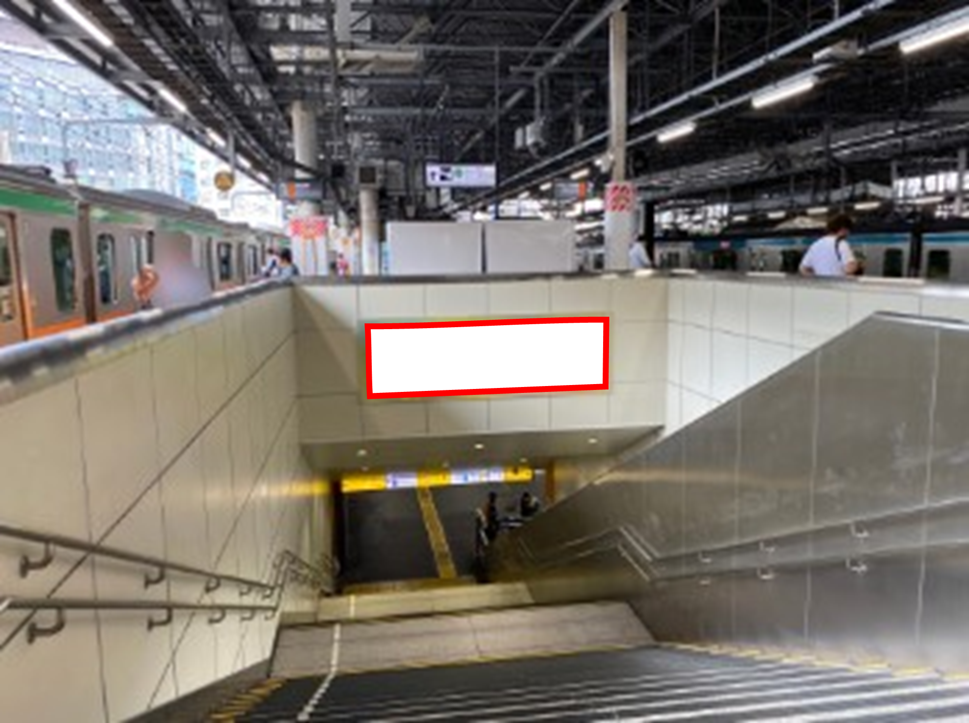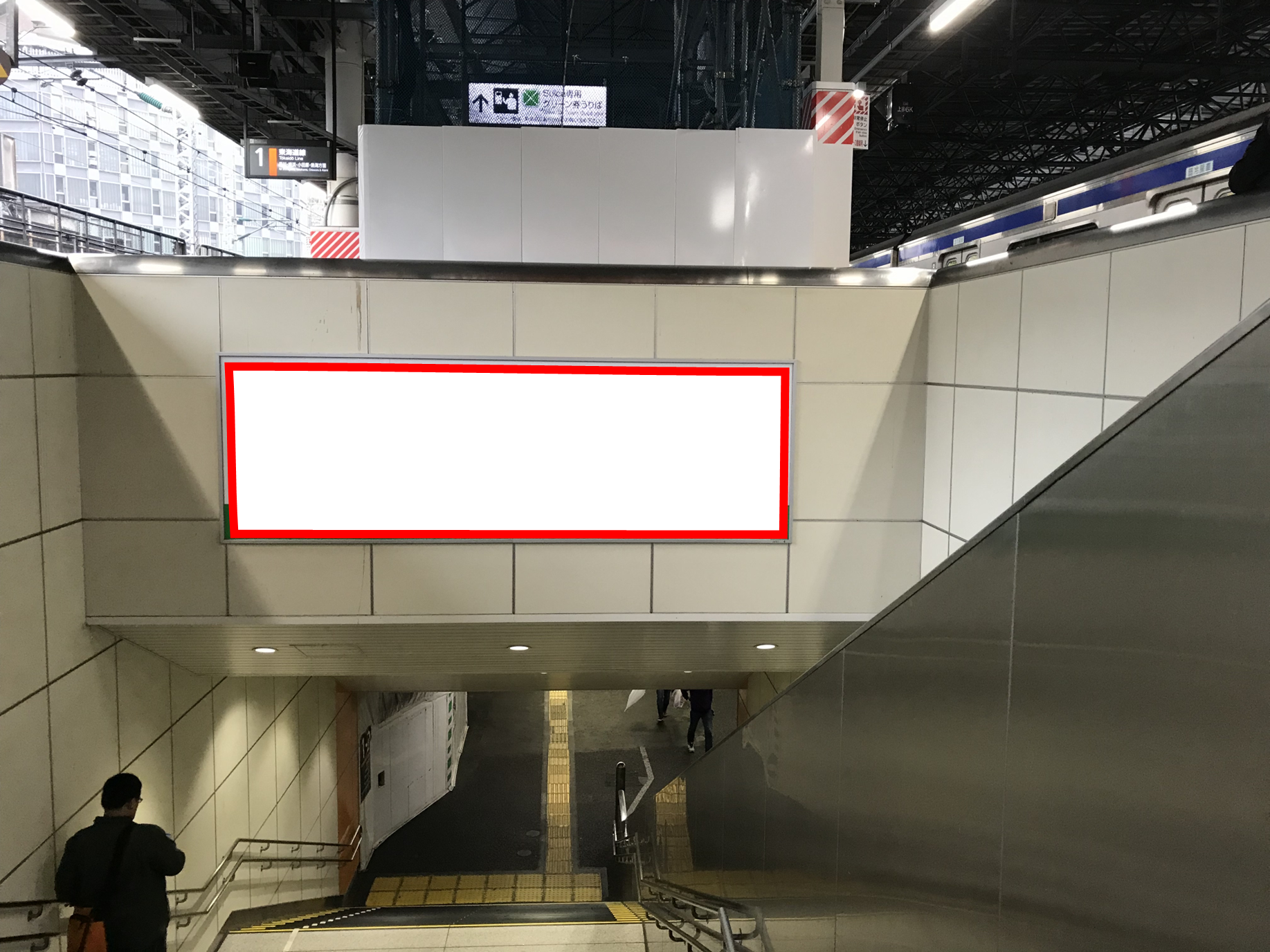 JR新橋駅、東海道線ホーム階段正面に設置されている看板です。