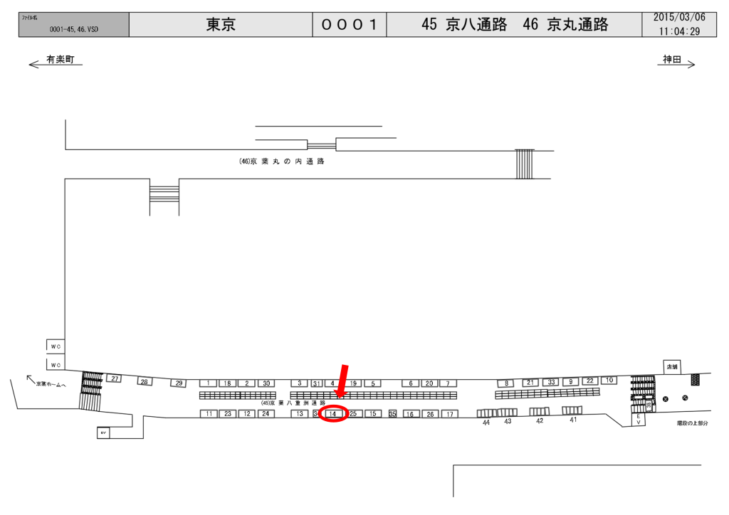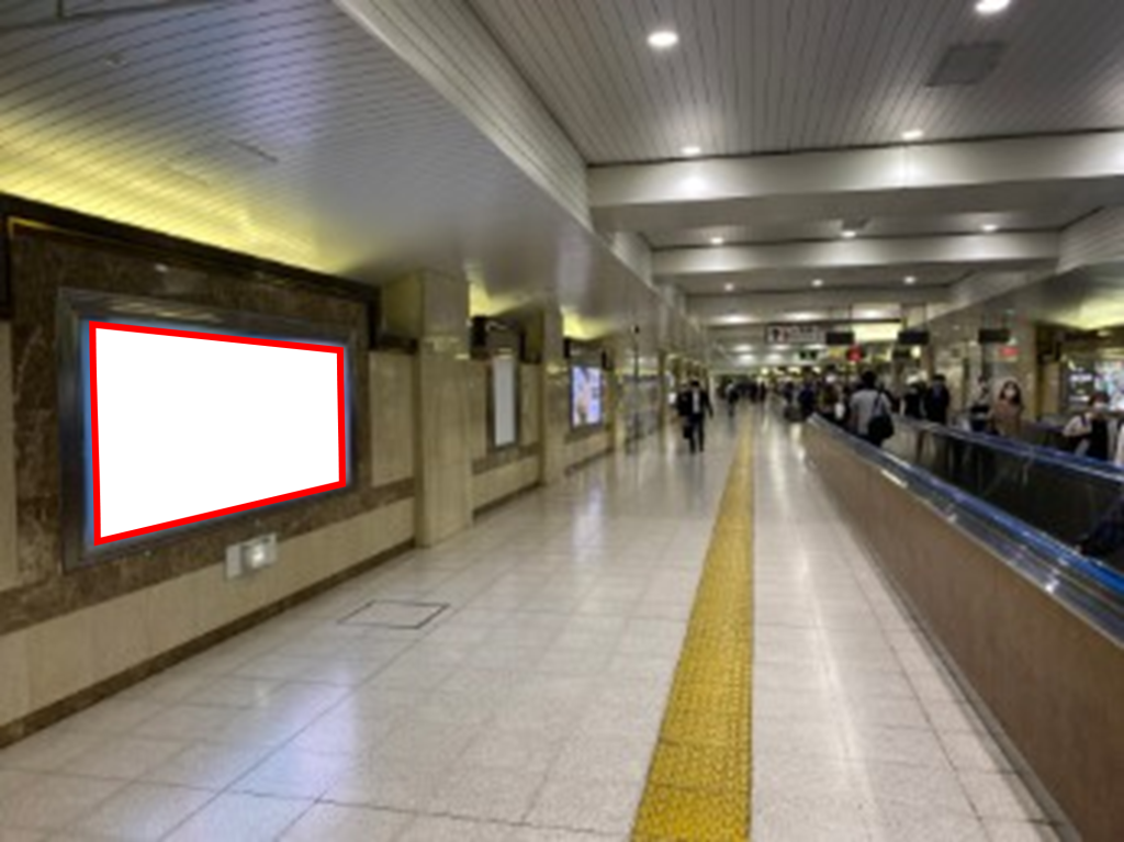 JR東京駅の八重洲側と京葉線ホームを結ぶ連絡通路の動く歩道の壁面に設置された駅看板です。