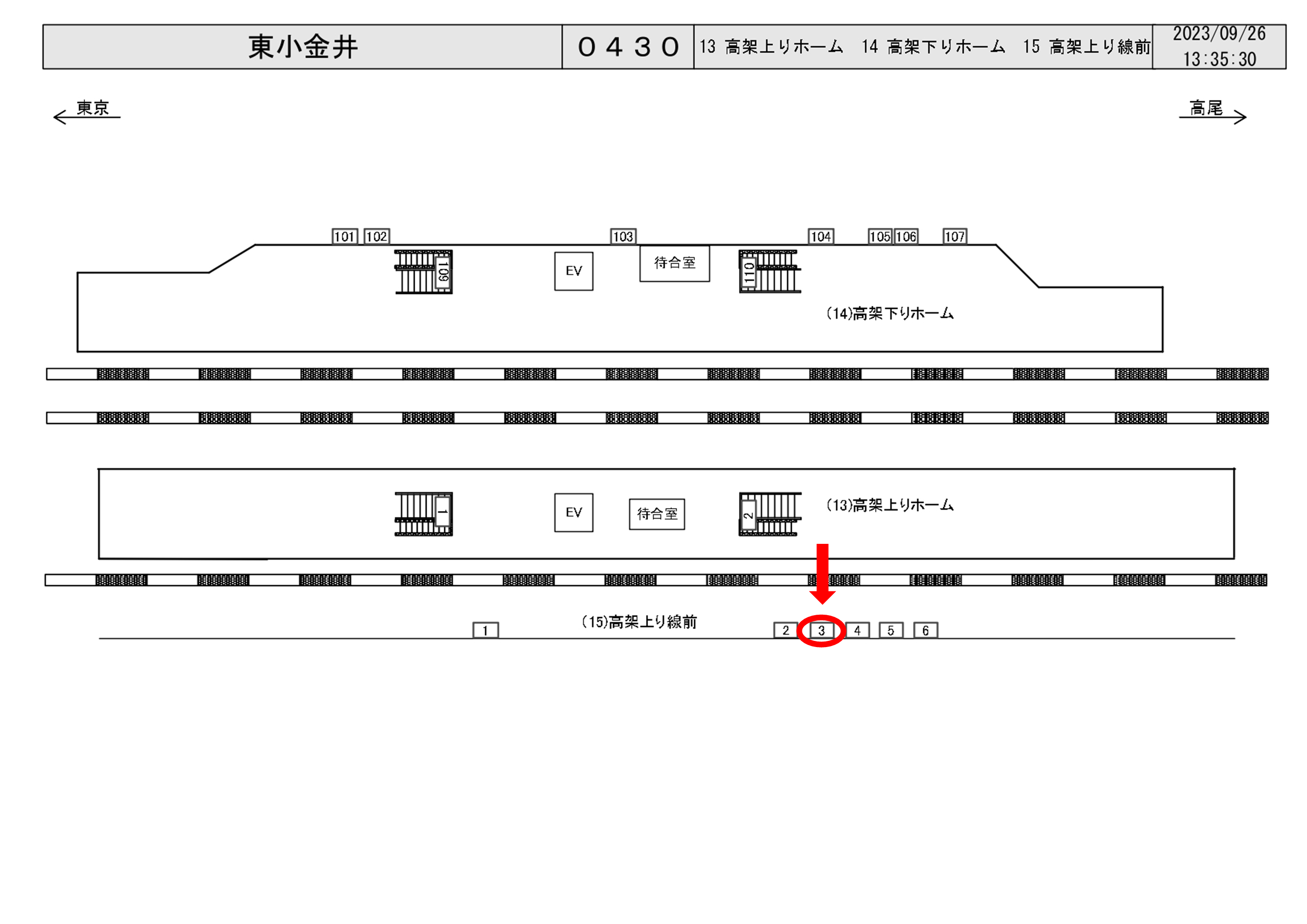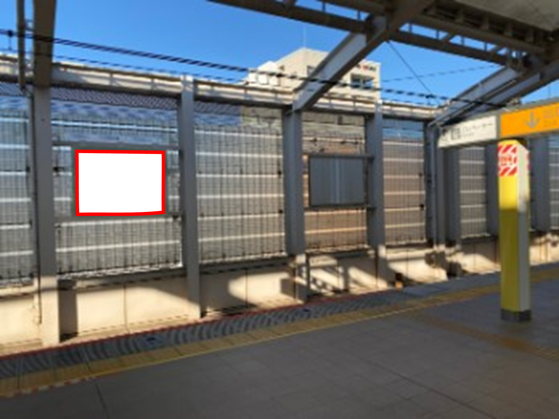 JR東小金井駅の上り(新宿・東京方面)ホーム階段付近のホーム前に設置された特額看板です。