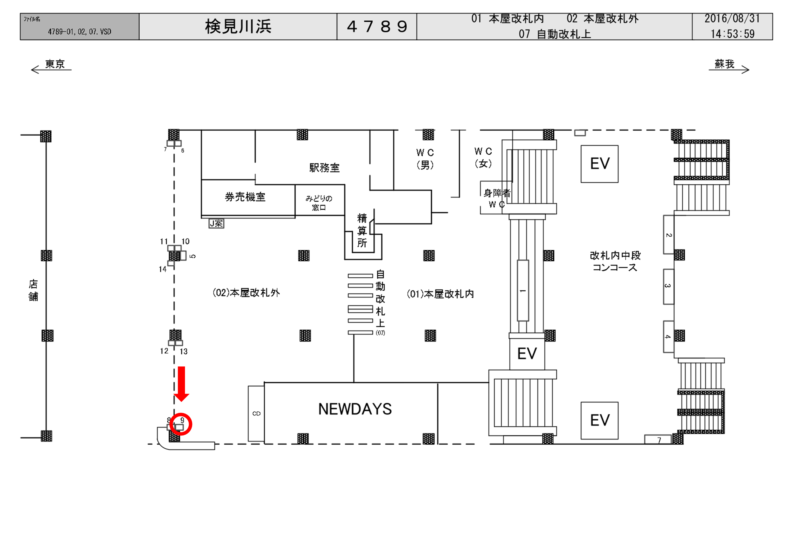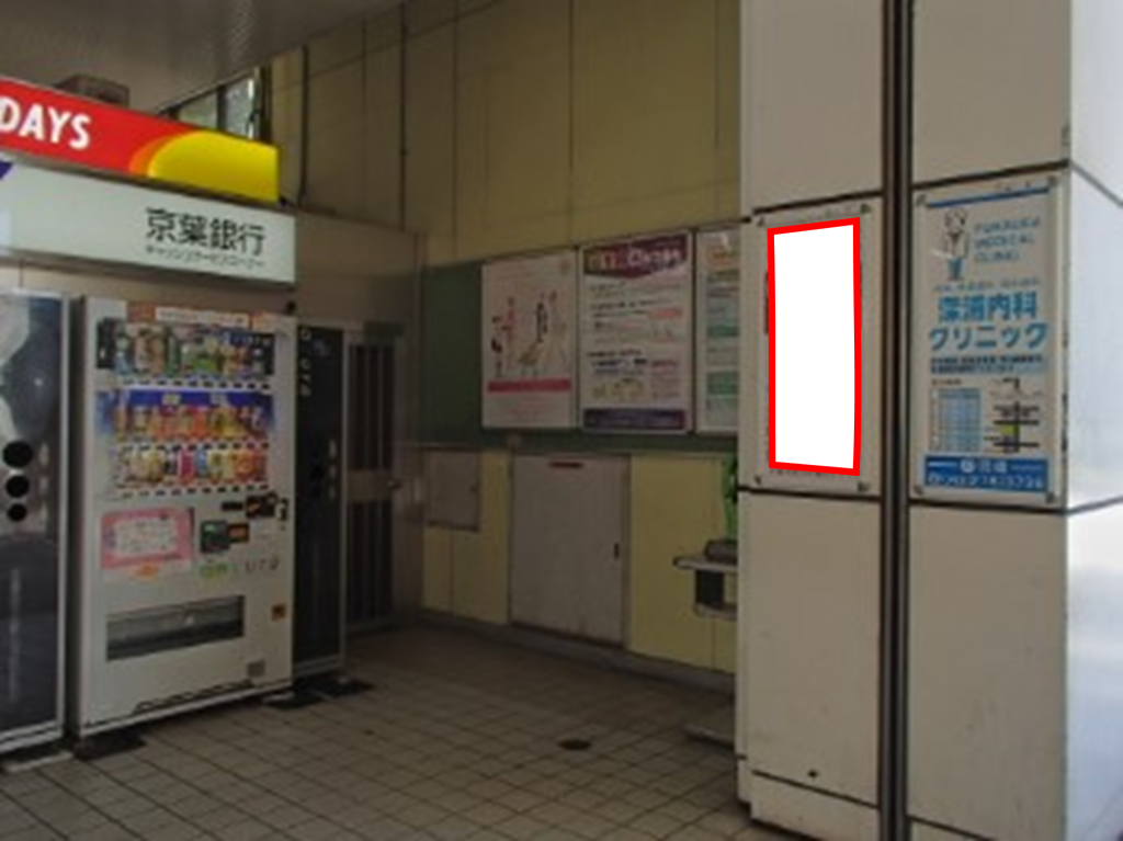 JR検見川浜駅の改札外北口側の柱面に設置された看板です。