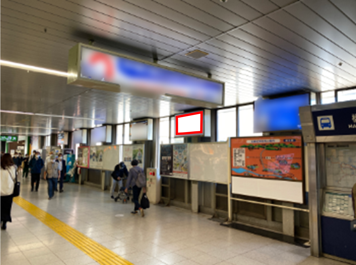 ■改札横の自由通路壁面にあり多くの方にご覧いただける視認性の高い看板です。