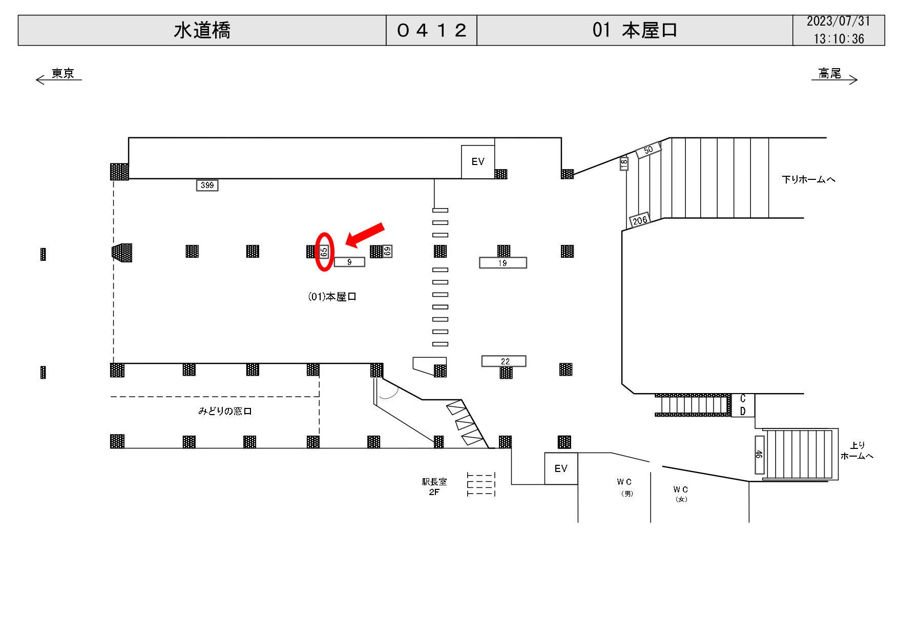 JR水道橋駅の東口改札外、改札出口正面の柱面に設置されている看板です。