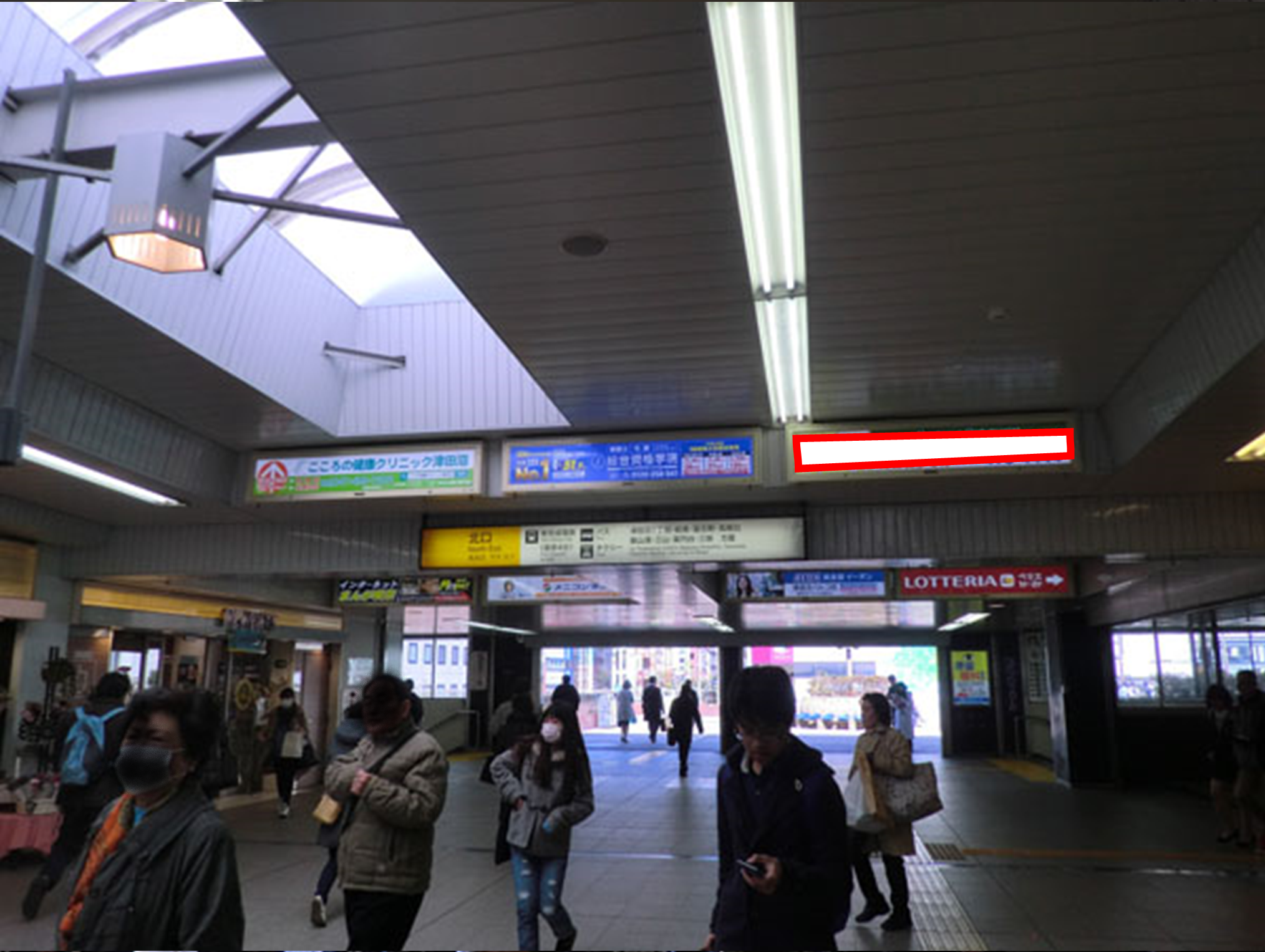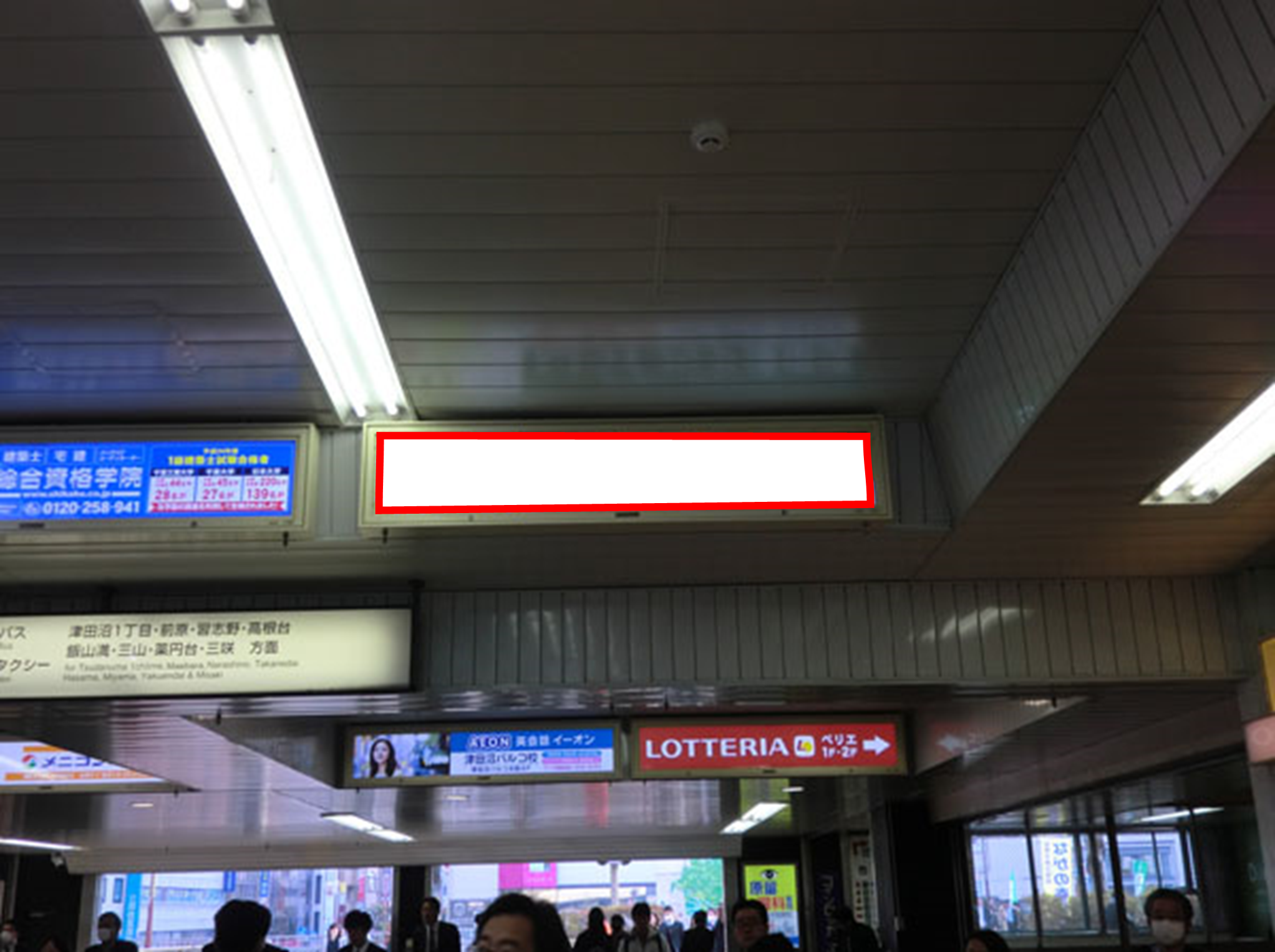 R津田沼駅の改札外、北口方面の通路に面して設置されている電飾看板です。