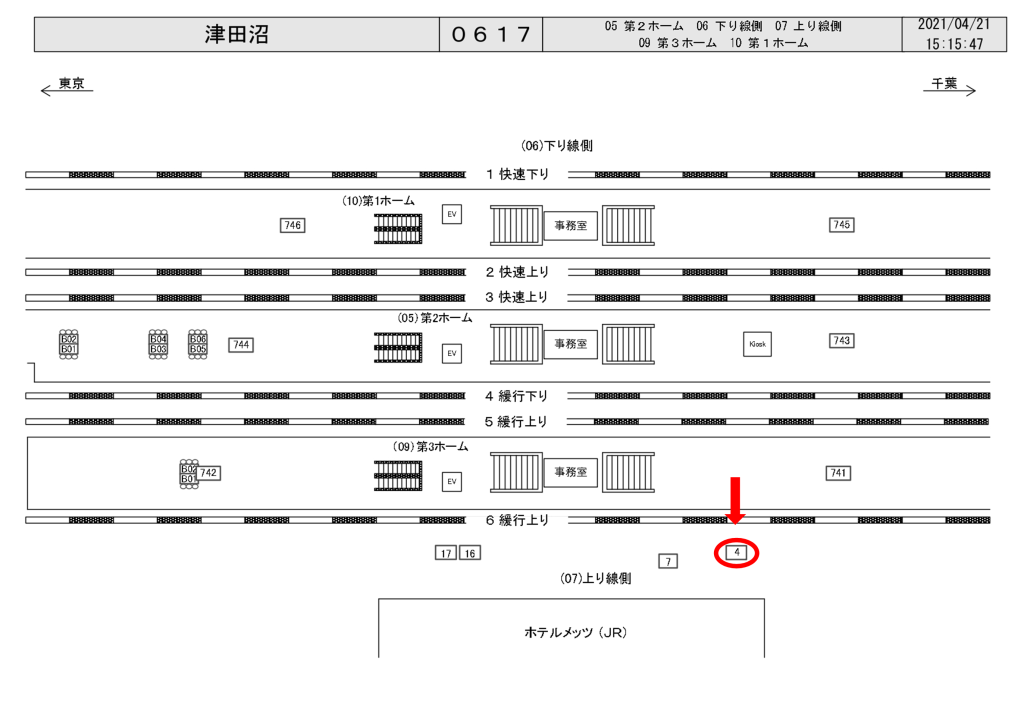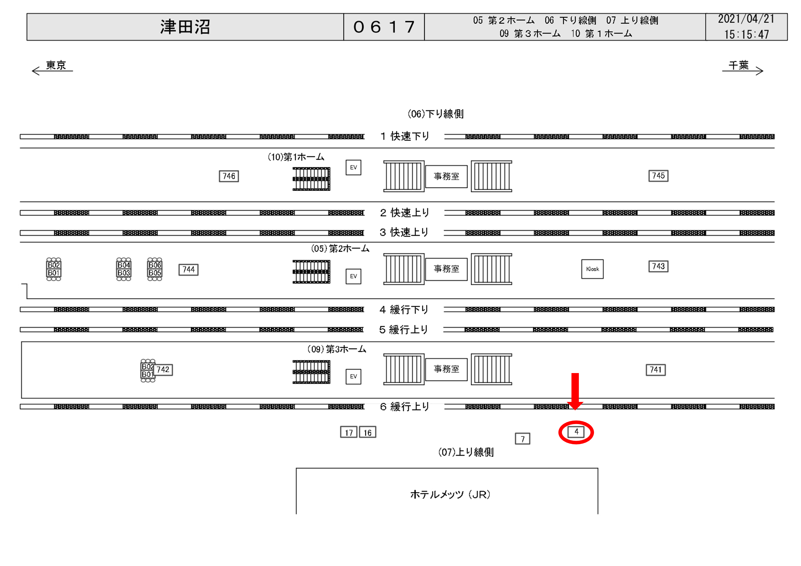 JR津田沼駅は一日の乗降客数が202,654人、総武線(快速)、総武線(各駅停車)が発着する駅です。
