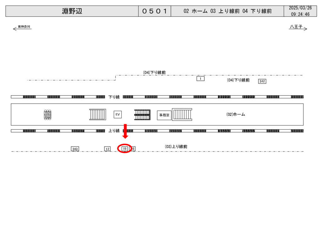JR淵野辺駅(横浜線)、上りホーム前(町田・東神奈川方面)に設置されている看板です。