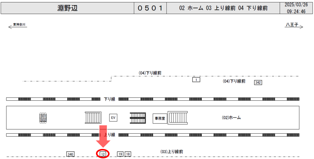 JR淵野辺駅(横浜線)、上りホーム前(町田・東神奈川方面)に設置されている看板です。