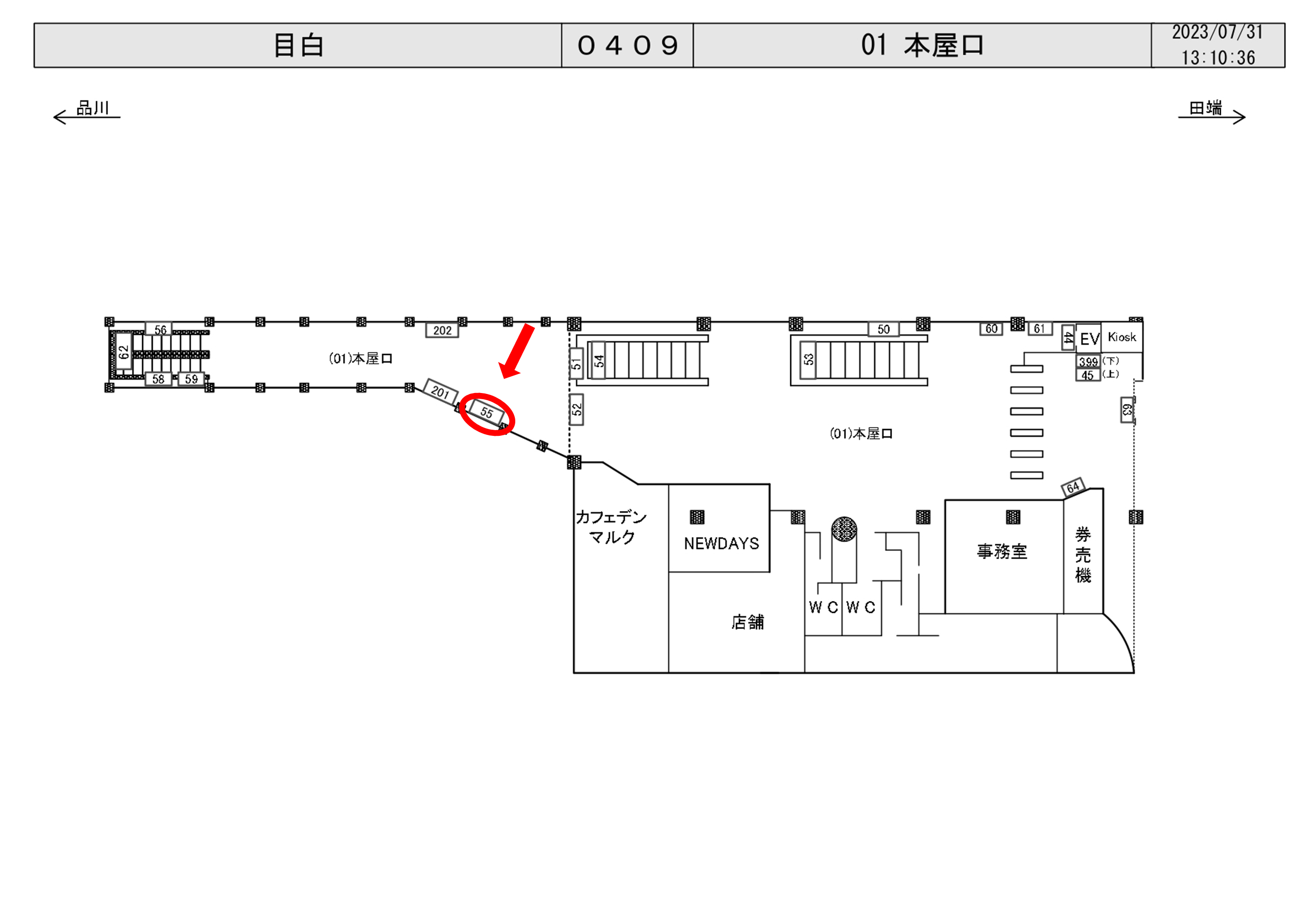 JR目白駅の改札内、山手線ホームエスカレータ行き通路横に設置された駅看板です。