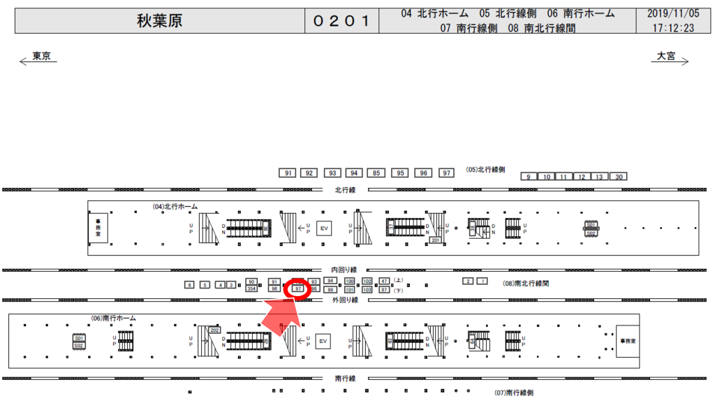 JR秋葉原駅、山手線外回り(上野・池袋方面)ホーム前のホームエレベーター付近に設置された大型ボードです。