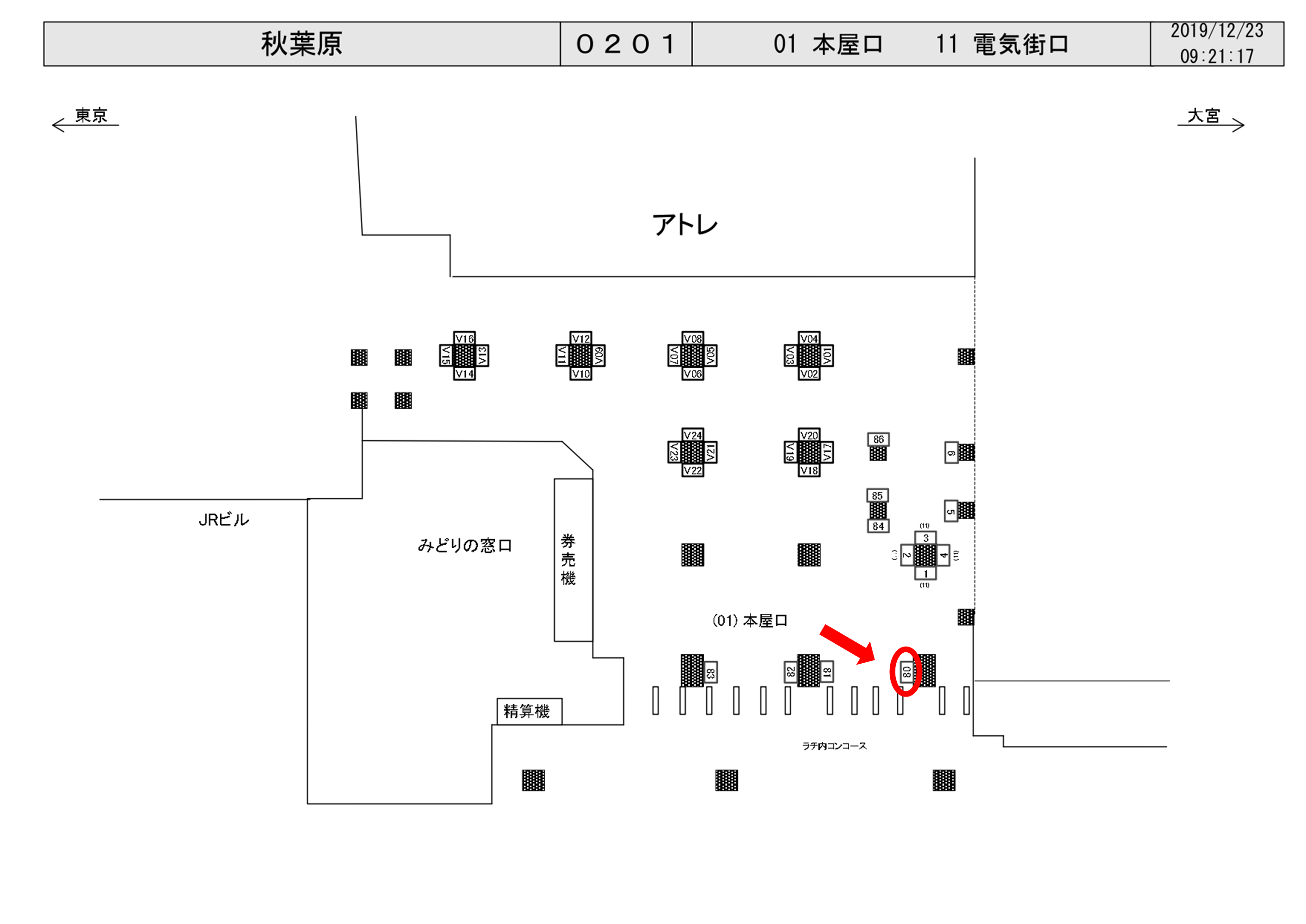 JR秋葉原駅の電気街口改札外の改札横にある柱面に設置された看板です。
