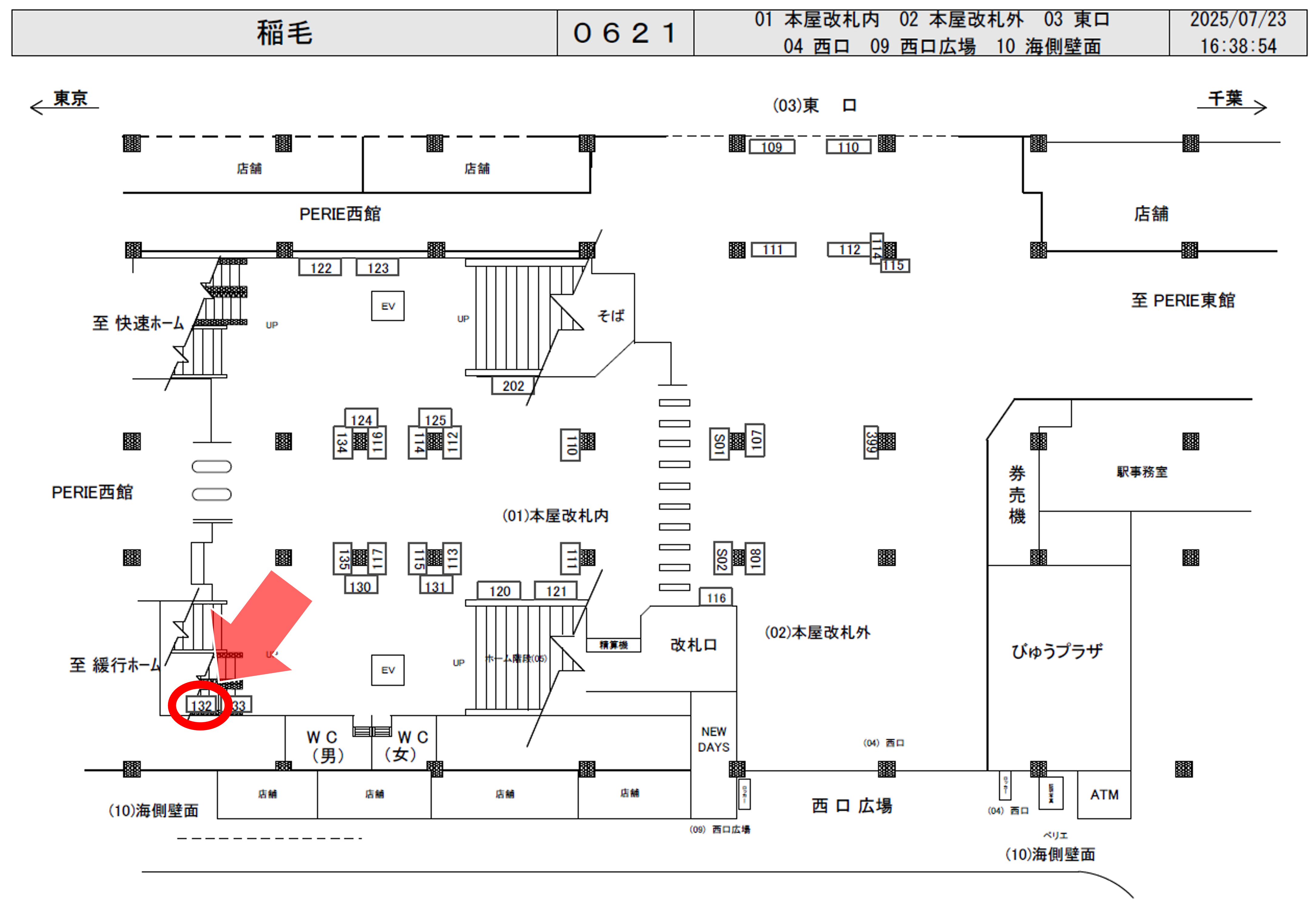 JR総武線 稲毛駅の改札内、各駅停車ホームエスカレータ横に設置された看板のご案内です。