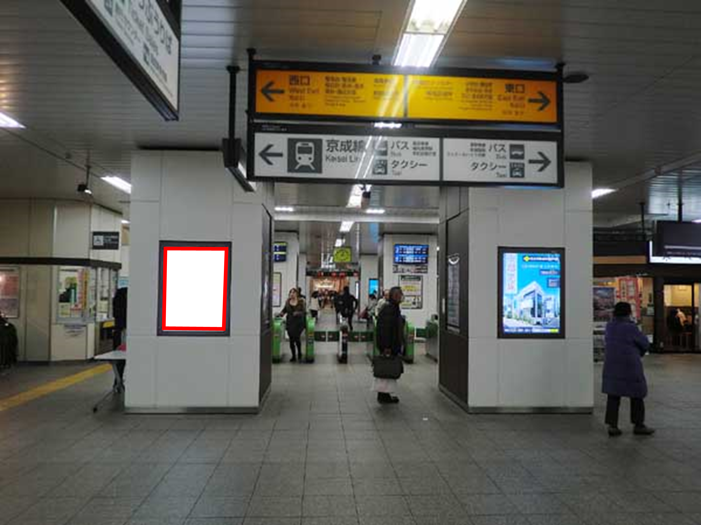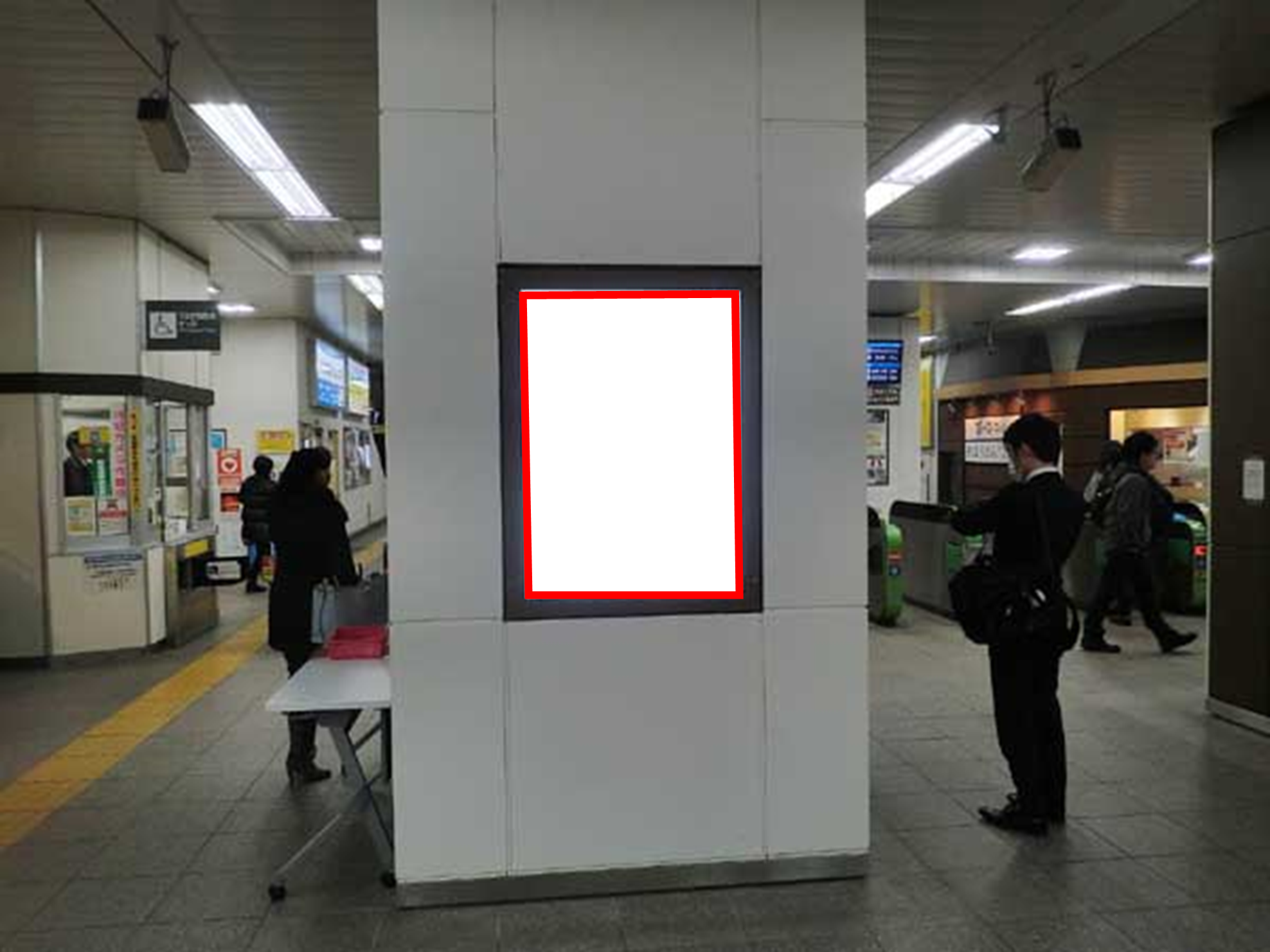 ■改札に向かわれる多くのお客様にご覧いただける視認性の高い看板です。