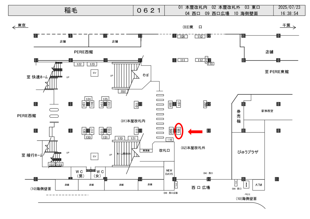 JR稲毛駅の改札外、改札前の柱面に設置された看板です。