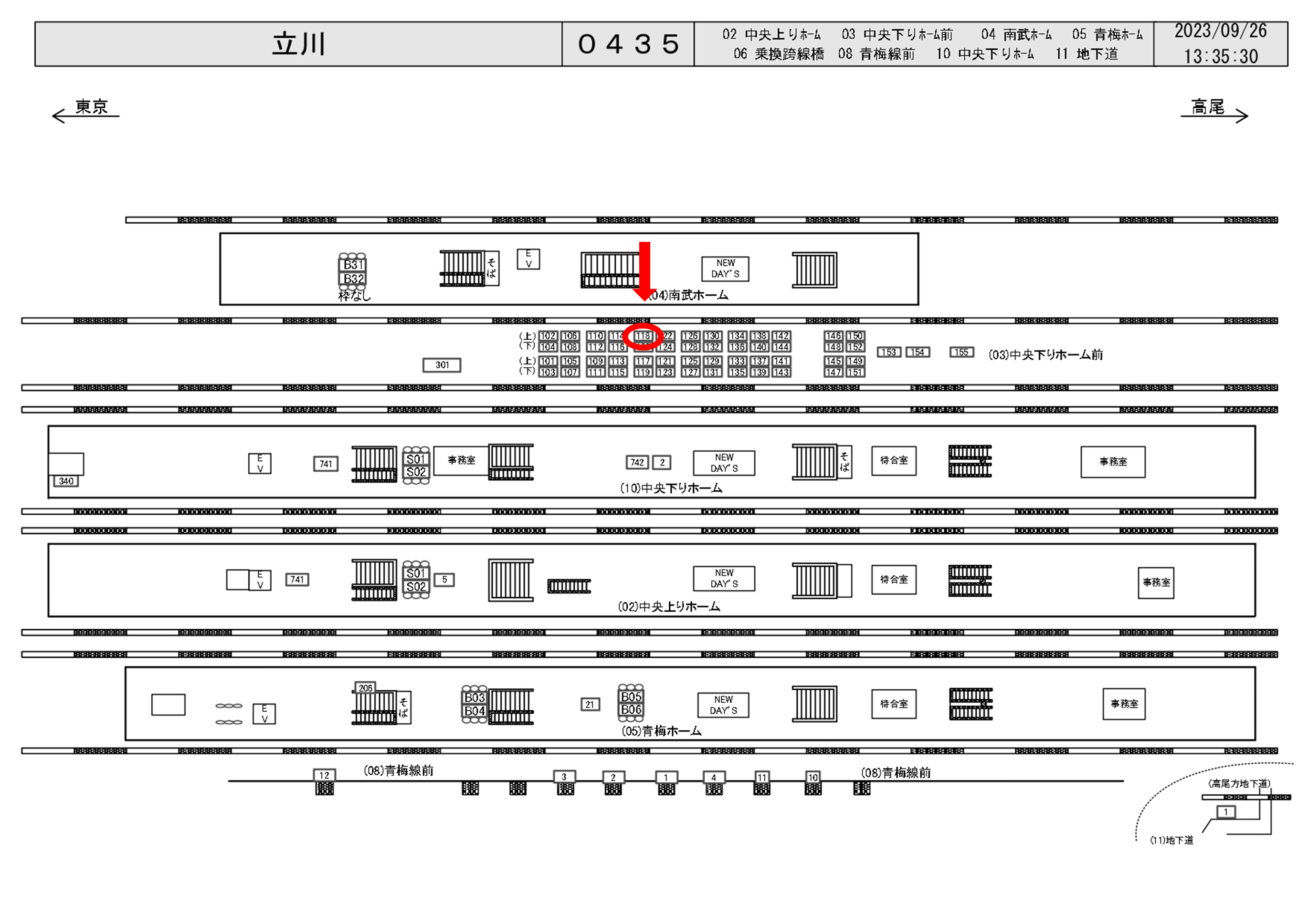 JR立川駅は一日の乗降客数が311,736人、中央線、青梅線、南武線、五日市線が発着する駅です。
