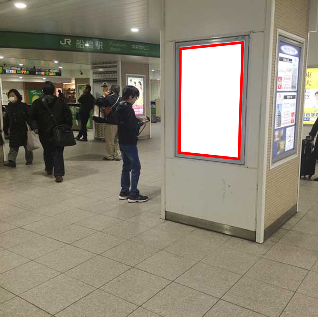 JR船橋駅の改札外通路、改札前柱面に設置されている看板です。