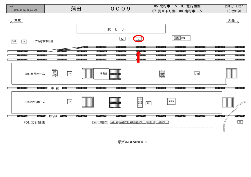 JR蒲田駅の京浜東北線(川崎・横浜・大船方面)ホーム前、ホーム階段付近に設置されている看板です。