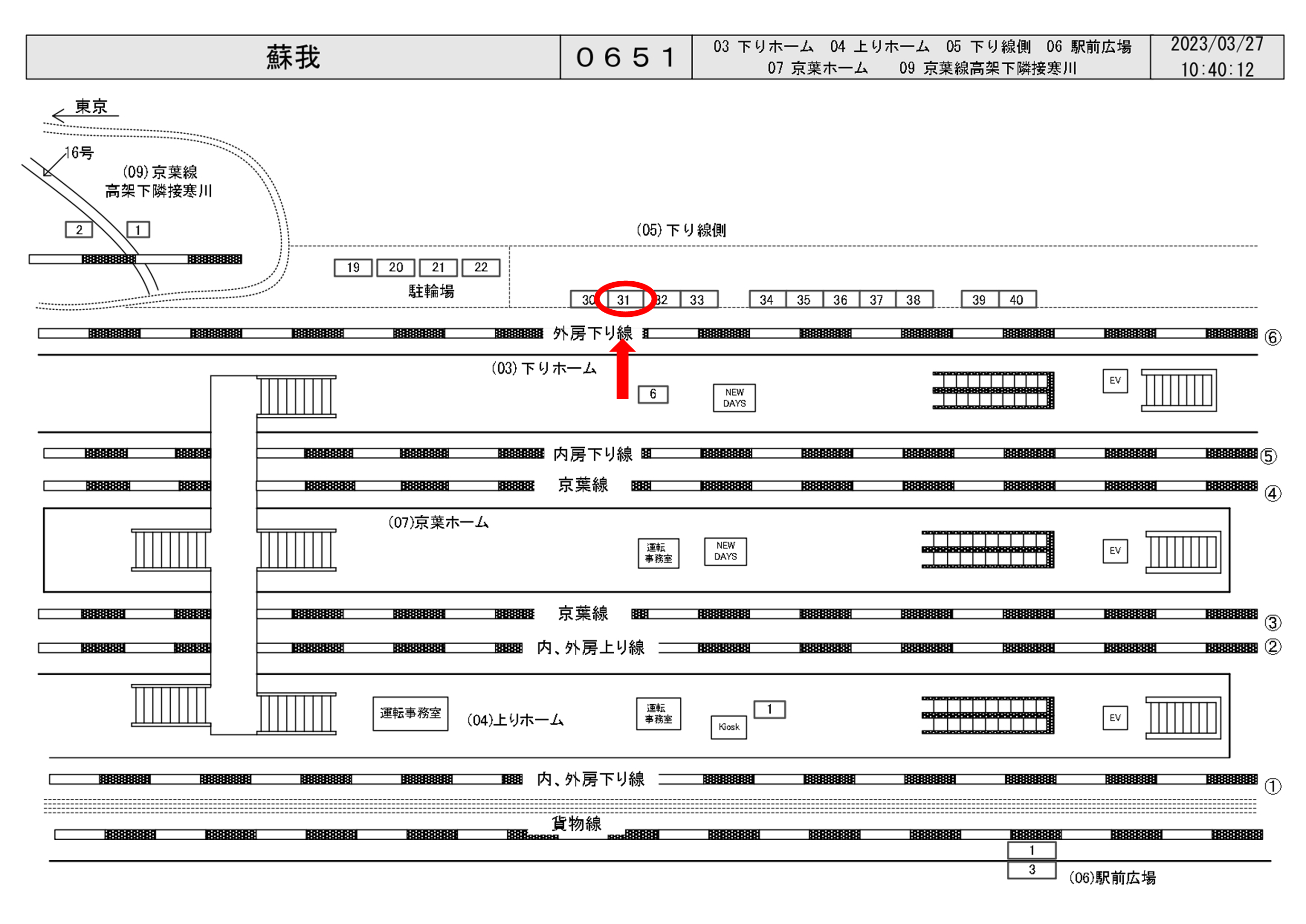 JR蘇我駅は一日の乗降客数が61,026人、京葉線が発着する駅です。