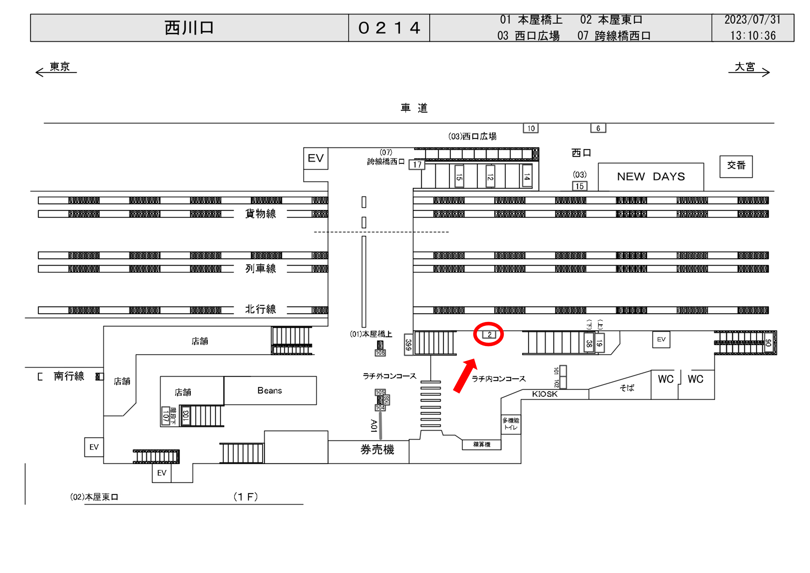 JR京浜東北線 西川口駅のホーム階段付近の通路壁面に設置された看板です。