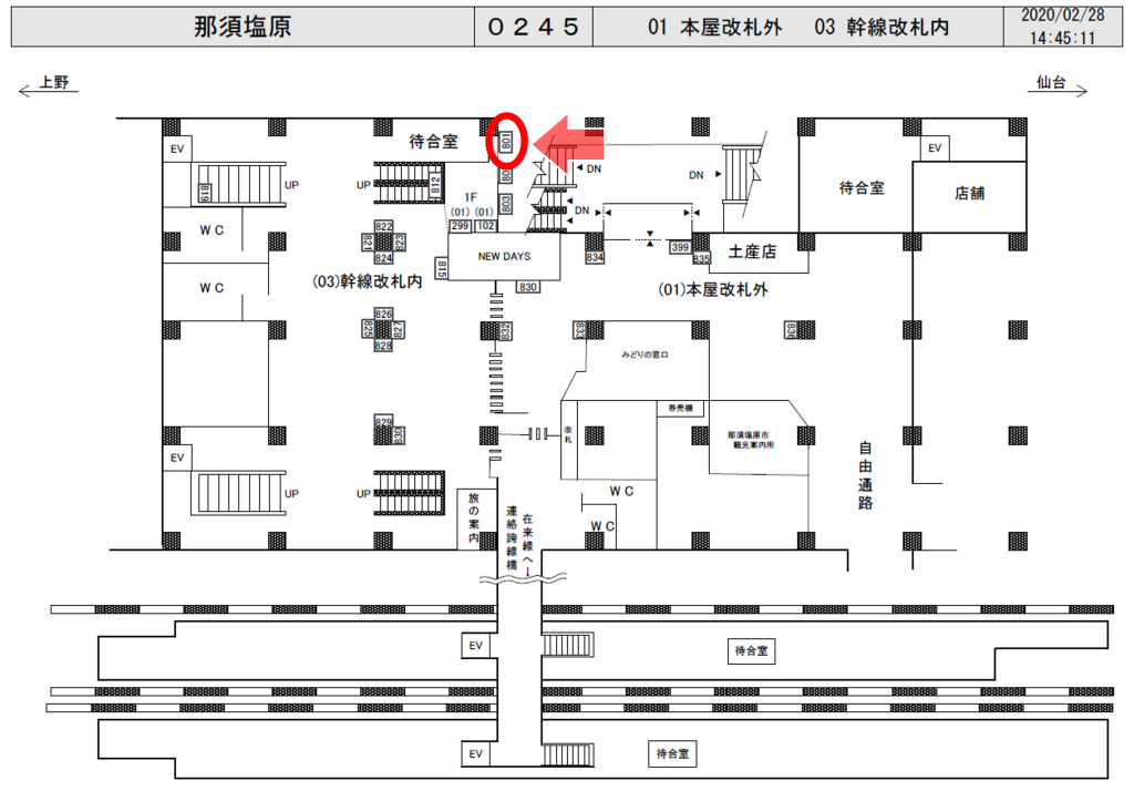 JR那須塩原駅の改札外、西口を出た階段正面に設置されている看板です。