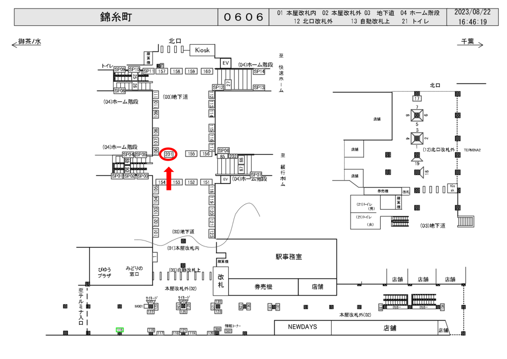 JR錦糸町駅の総武各駅停車線ホーム階段下の北口改札方面に面した看板です。