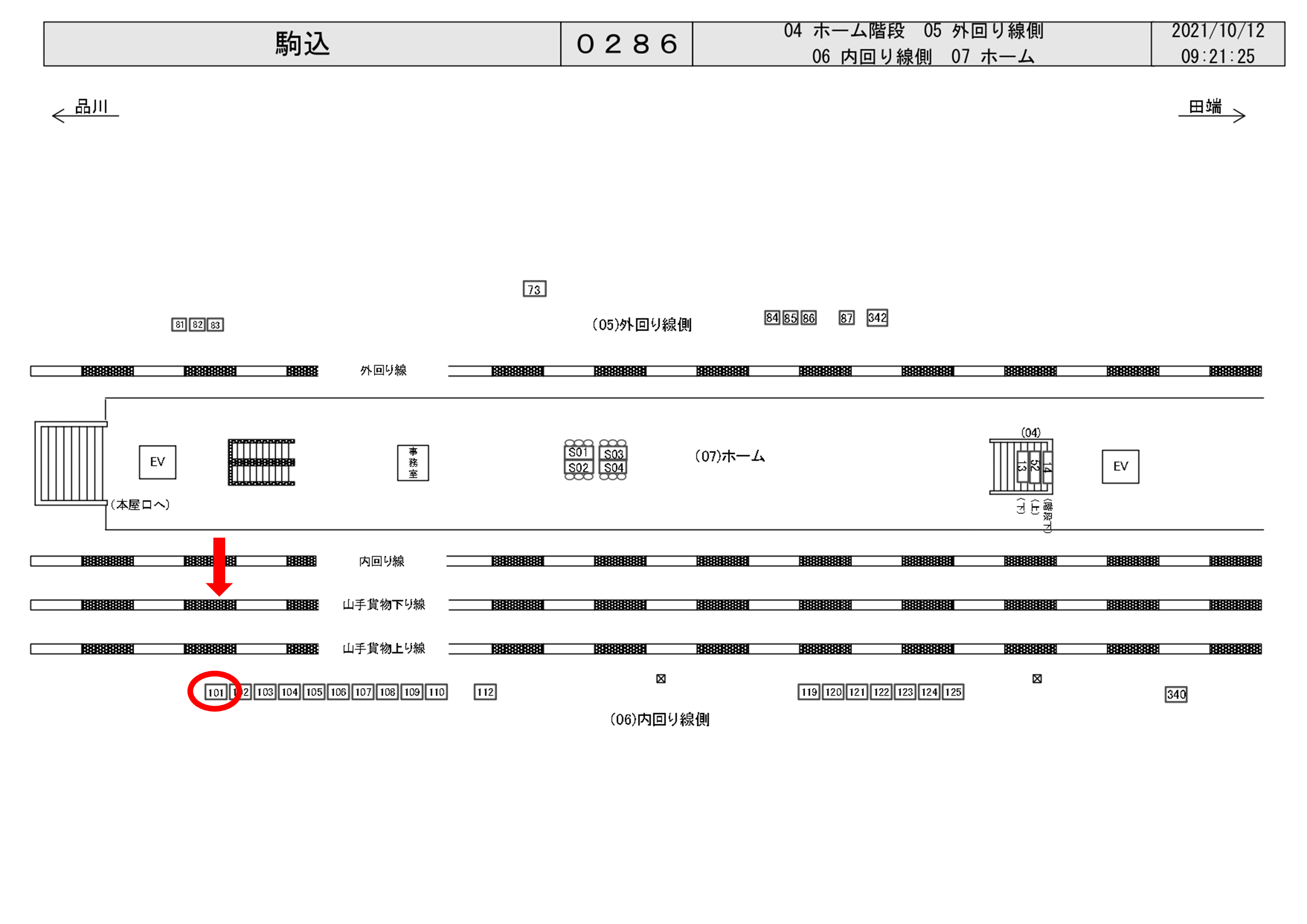 JR駒込駅、山手線内回り(池袋・新宿・渋谷方面)池袋駅寄りホームエスカレータ付近に設置された看板です。