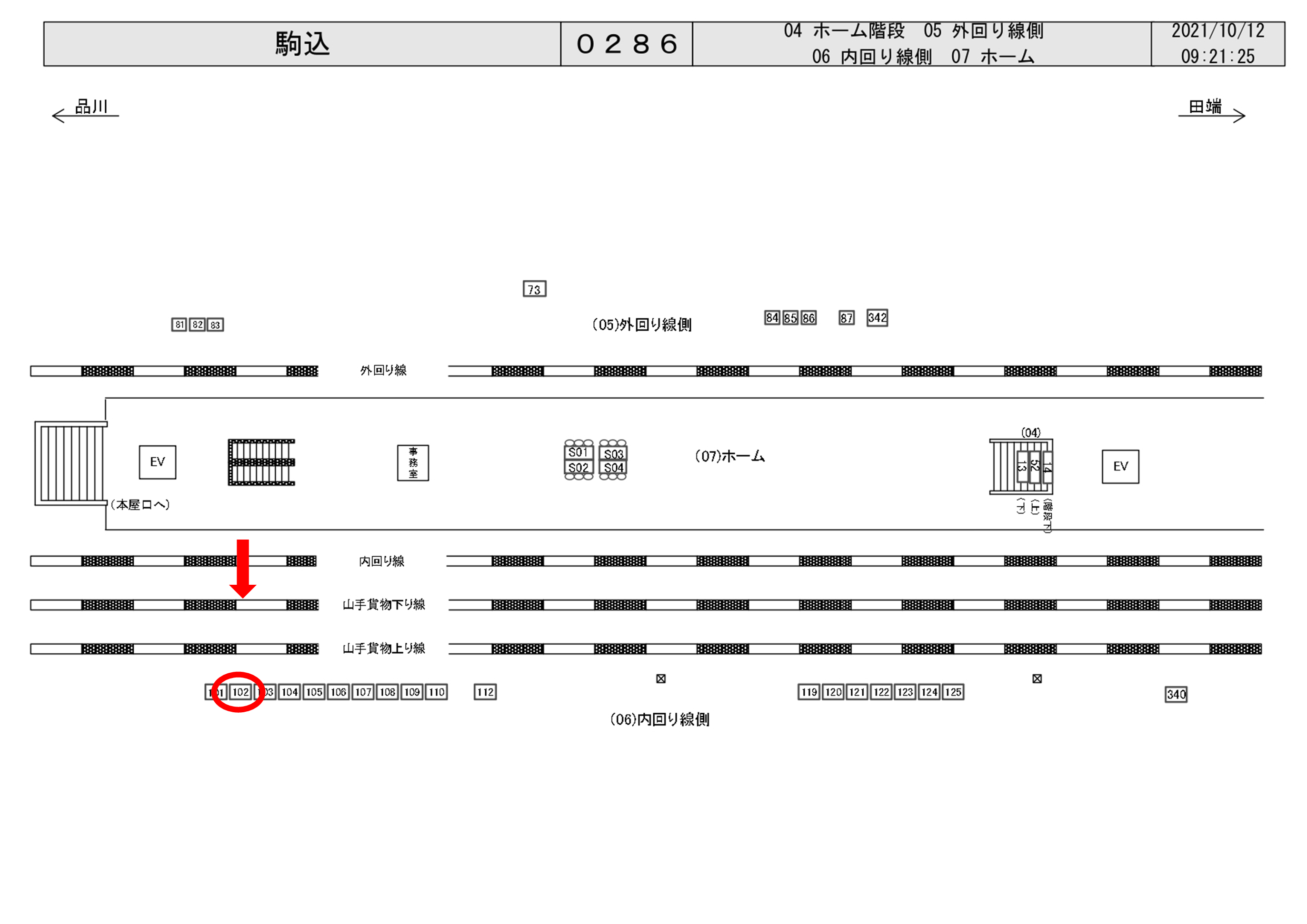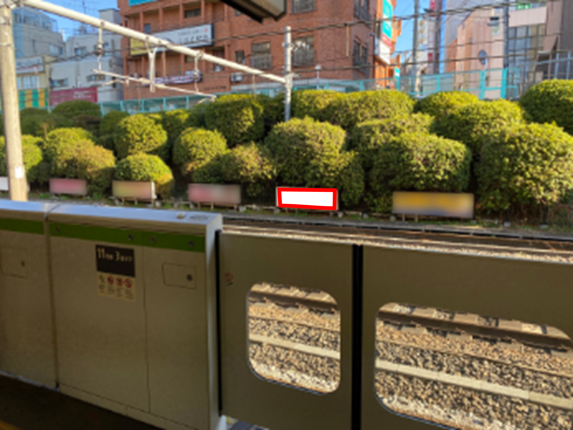 JR駒込駅、山手線内回り(池袋・新宿・渋谷方面)池袋駅寄りホームエスカレータ付近に設置された看板です。