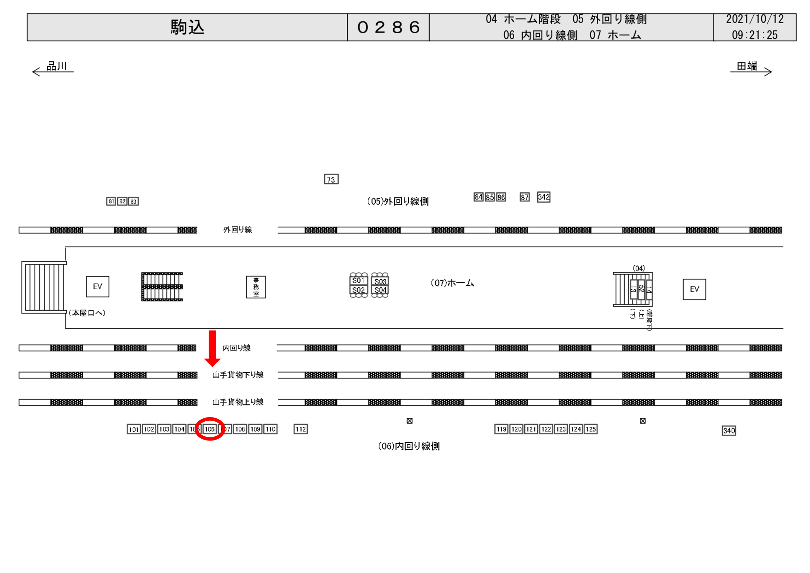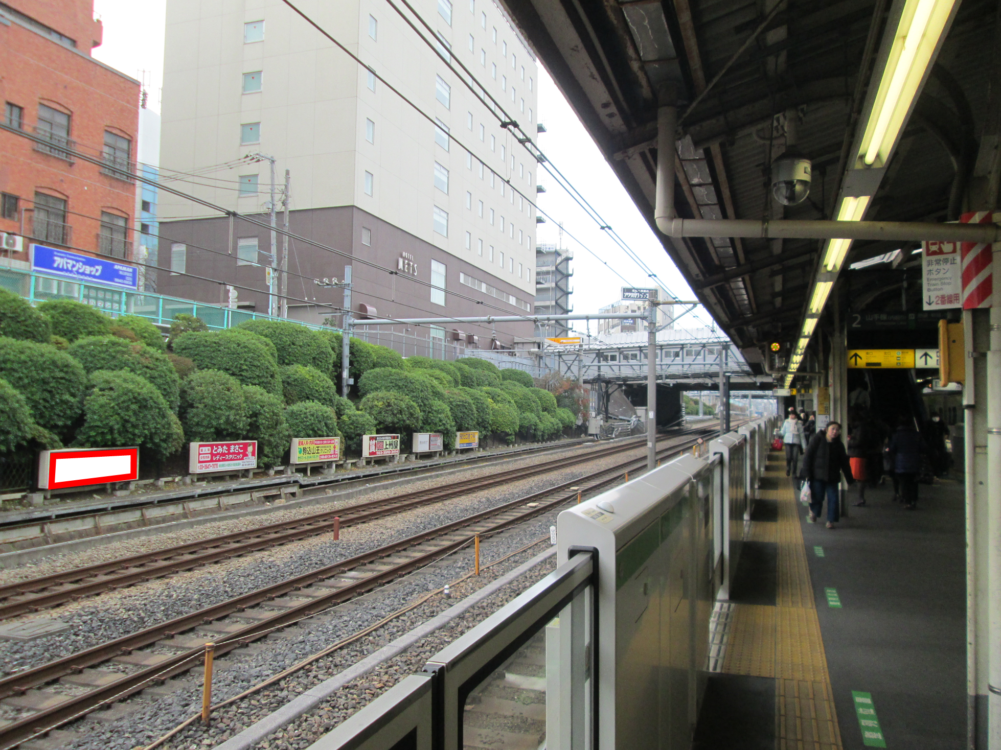 JR駒込駅、山手線内回り(池袋・新宿・渋谷方面)池袋駅寄りホームエスカレータ付近に設置された看板です。