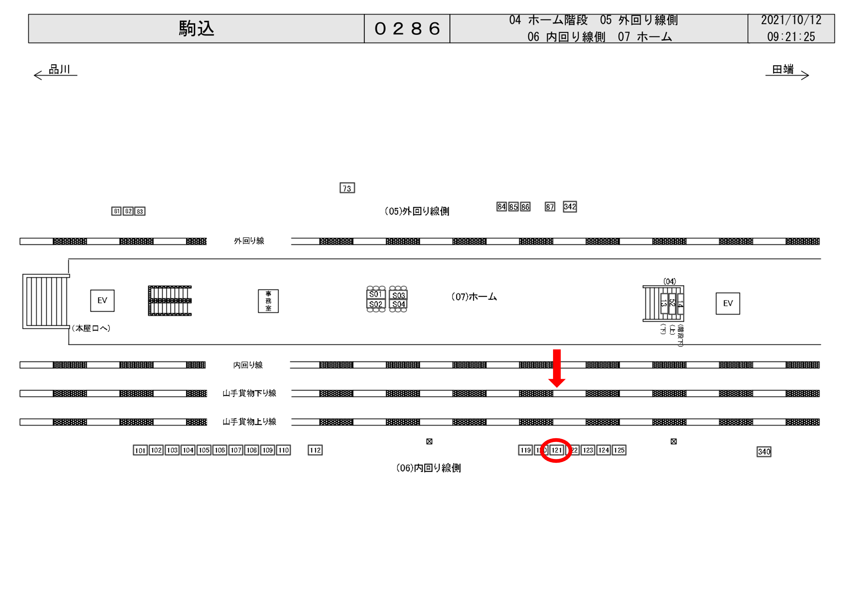JR駒込駅、山手線内回り(池袋・新宿・渋谷方面)ホーム階段付近に設置された看板です。