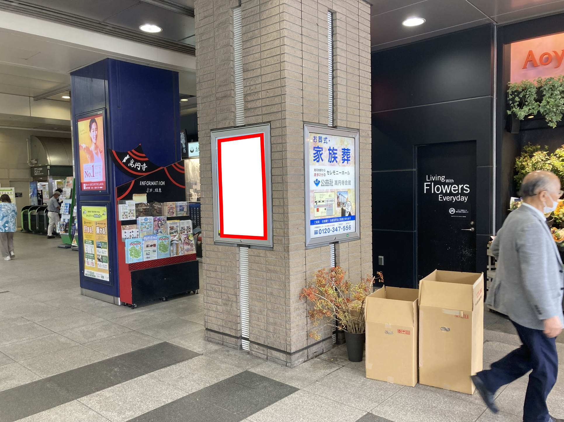 JR高円寺駅の改札外通路、北口方面の柱面に設置された電飾看板です。