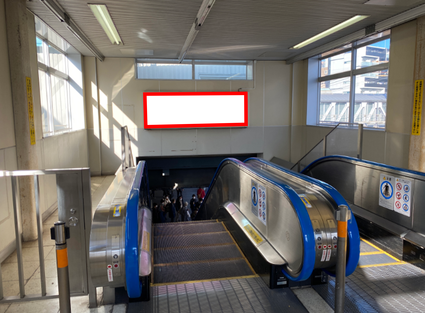 JR鶴見駅の改札内、京浜東北線ホームへ繋がるエスカレーター正面に設置された電飾看板です。