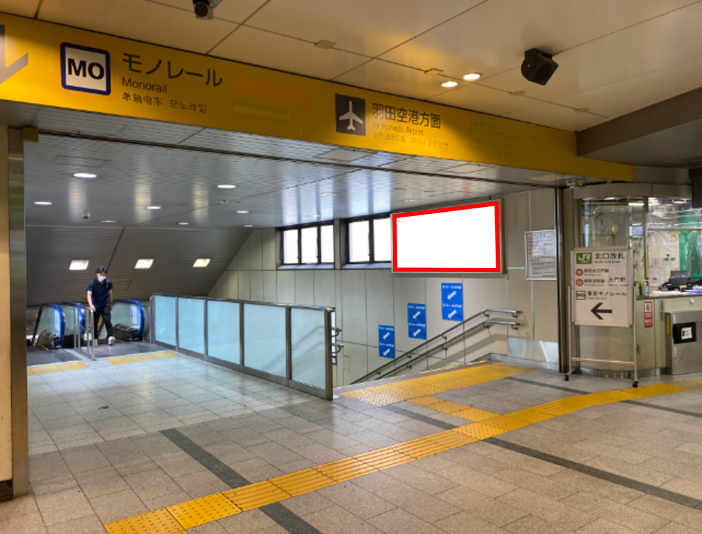 大門駅(浅草線・大江戸線)、竹芝駅(ゆりかもめ)へも徒歩で乗り換え可能ですので、浜松町駅、山手線・京浜東北線、港区・汐留方面での広告をお考えの方に最適な駅看板です。